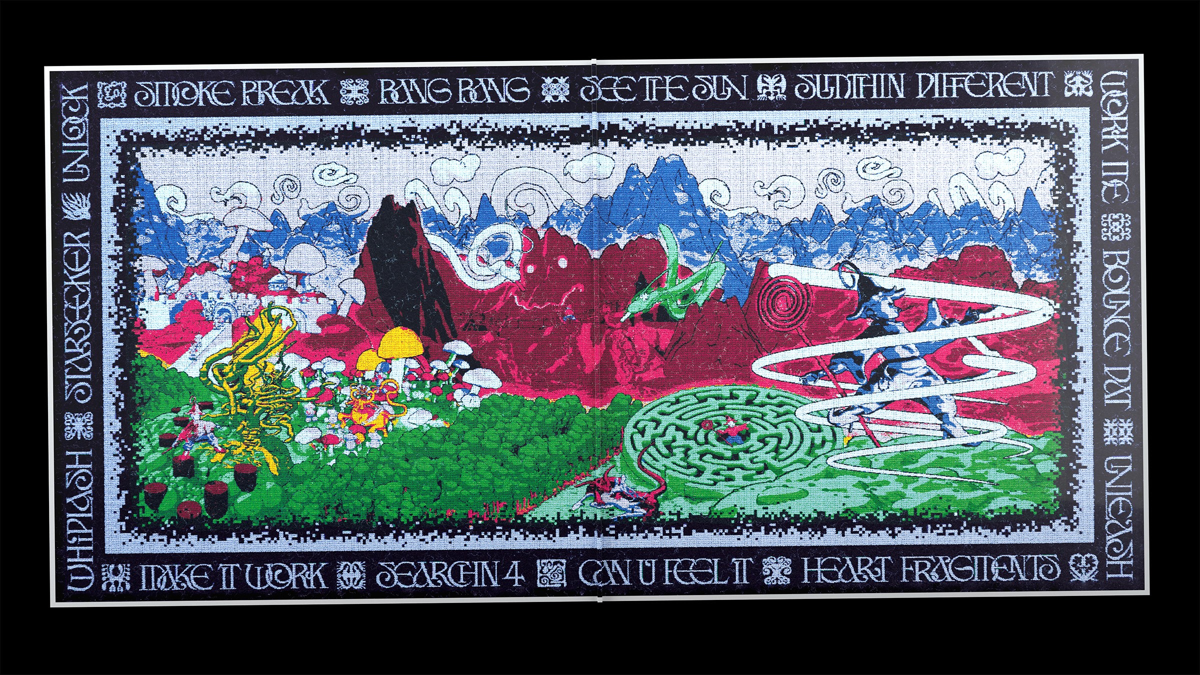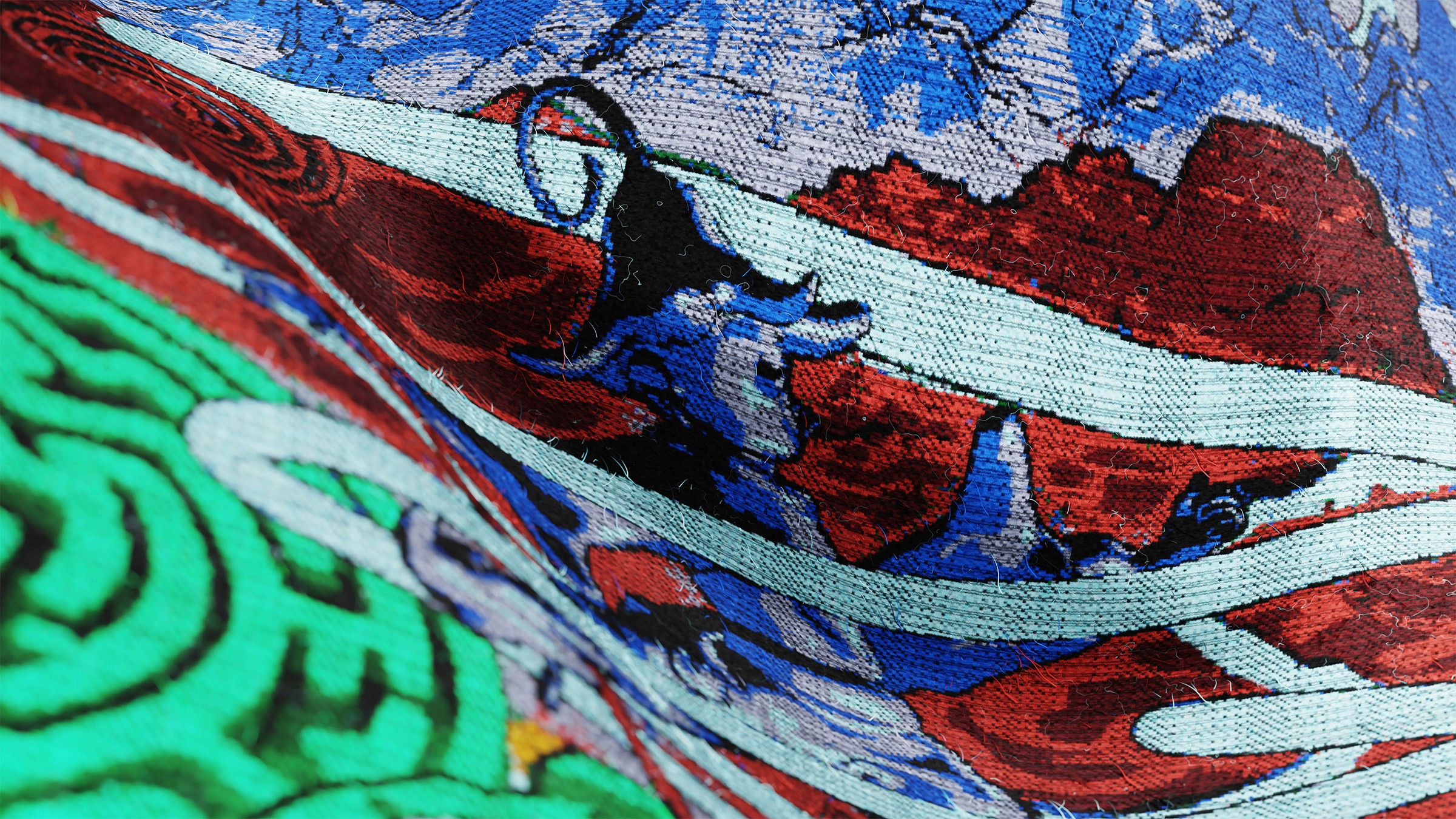 Telling the saga of a hero on a search for freedom, enlightenment and joy. Inspired by the stories told on medieval tapestries, in the form of digital woven pixels, the artwork features experiments in VR sculpting, collage and digital tapestry making.