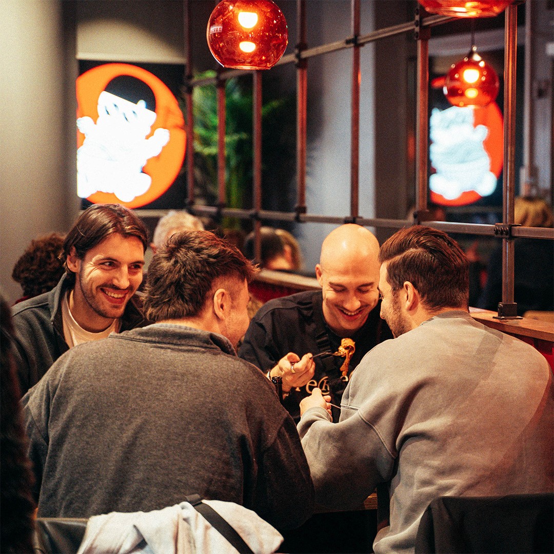 Now one of Berlin’s most frequented restaurant chains, Wen Cheng noodles came to us with their concept and a desire to bring their brand to the masses. From menu design, to a branding that rejoiced in the sensations of tucking in to a warm bowl of noodles, we helped them grow from an idea, to a cult-following of noodle lovers which now boasts four locations (and counting). Interior design and ongoing Graphic Design by Space and Brand Studio.